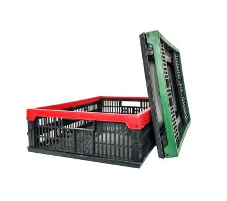 Пластиковий складний ящик служить для зберігання та транспортування продуктів. Такі ящики часто використовують у магазинах, овочесховищах, складах.