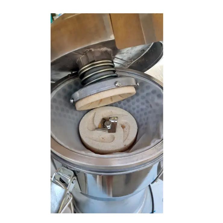 Завдяки використанню кам'яних жорнів та високошвидкісного обертання, млин забезпечує ефективне перетирання навіть жировмісних продуктів. У процесі роботи частки подрібнюються до мікронного рівня, що дозволяє отримувати гладку та однорідну консистенцію продукту.