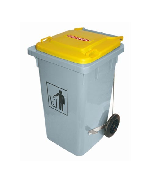 Контейнер для сміття 80 л Araven виготовлений із міцного поліетилену, що підлягає переробці. Закривається щільною кришкою жовтого кольору.