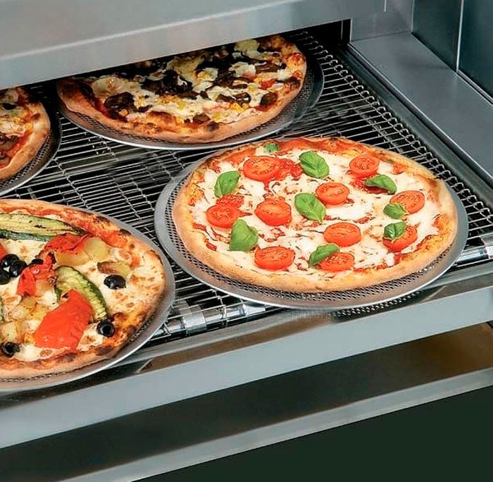 Конвеєрна піч для піци Zanolli SYNTHESIS 08/50 V PW E може готувати піцу і овочі на грилі, фаст-фуд і випічку, а також для випічки прямокутної піци на деку 600 * 400 мм.