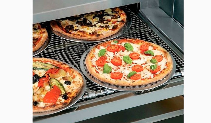 Конвеєрна піч для піци Zanolli SYNTHESIS 12/80 VE може готувати піцу і овочі на грилі, фаст-фуд і випічку, а також для випічки прямокутної піци на деку 600 * 400 мм.