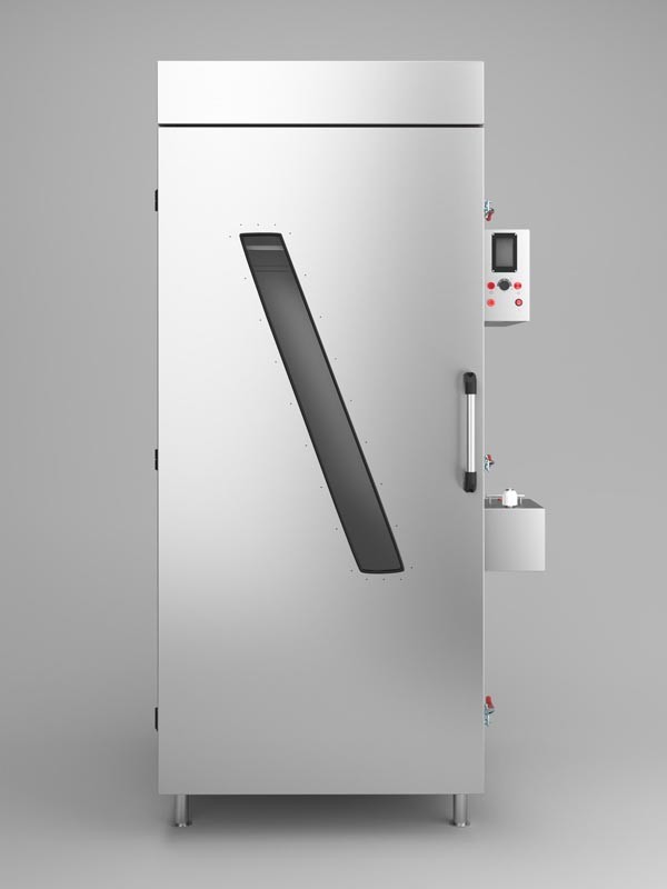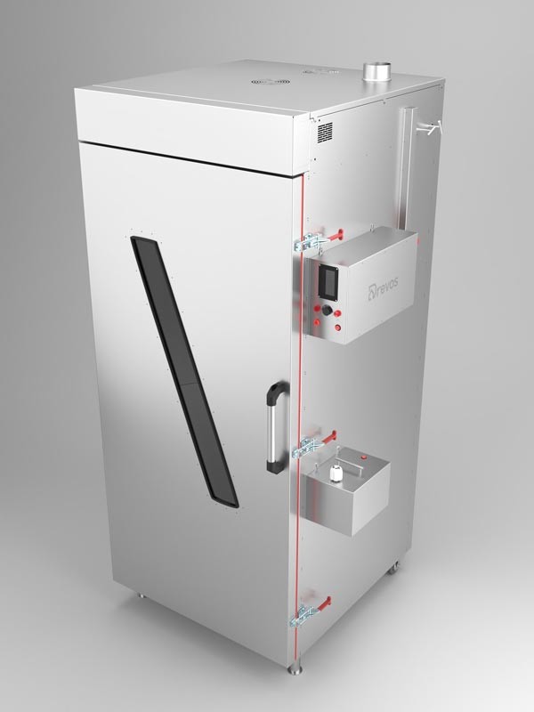 Професійна термодимова камера PRO 100 із завантаженням до 100 кг продукту служить для холодного і гарячого копчення різних видів м'ясної та рибної продукції, сирів, а також сушки, варіння, смаження.