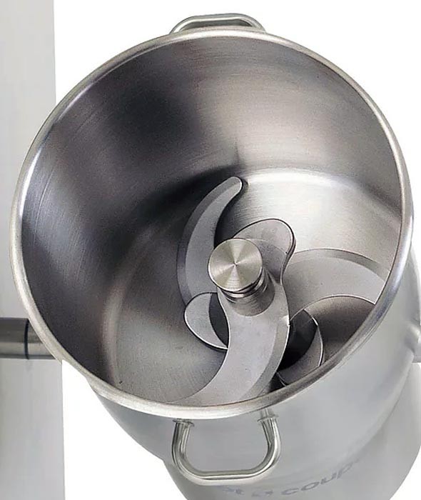 Ніж низької посадки з 3 лезами з регульованою висотою розташовується на дні чаші, гарантуючи якісне та однорідне подрібнення навіть за малого обсягу продуктів (входить до комплекту поставки). Зручно нахиляється для легкого розвантаження готового продукту. Знімна конструкція забезпечує швидке очищення чаші від забруднень. Вбудований важіль для блокування положення чаші.