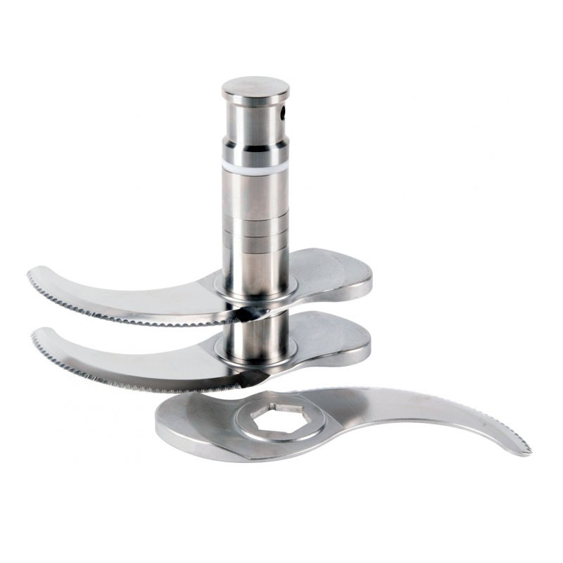 Ніж низької посадки з 3 лезами з регульованою висотою розташовується на дні чаші, гарантуючи якісне та однорідне подрібнення навіть за малого обсягу продуктів (входить до комплекту поставки). Зручно нахиляється для легкого розвантаження готового продукту. Знімна конструкція забезпечує швидке очищення чаші від забруднень. Вбудований важіль для блокування положення чаші.