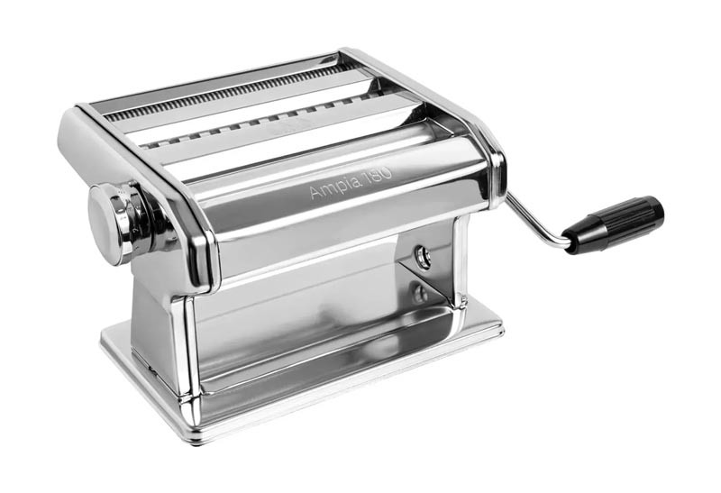 Marcato Ampia 180 Classic – це італійська тісторозкатка-локшина для будинку, створена для ідеальної розкочування тіста потрібної товщини і нарізування локшини. Ширина розкочування 180 мм. Машинка нарізає два види локшини: феттучині шириною 6,5 мм., тальятелле - 1,5 мм. та плоску широку пасту 180 мм. - лазіння