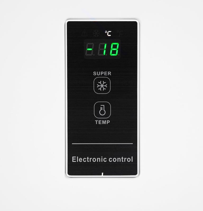 Модель FRM-145ECM оснащена електронним термостатом, вбудованим конденсатором, що не потребує технічного обслуговування, та зливом для видалення талої води.