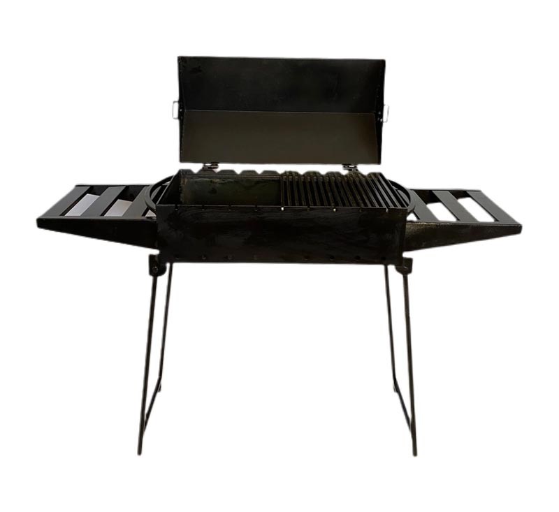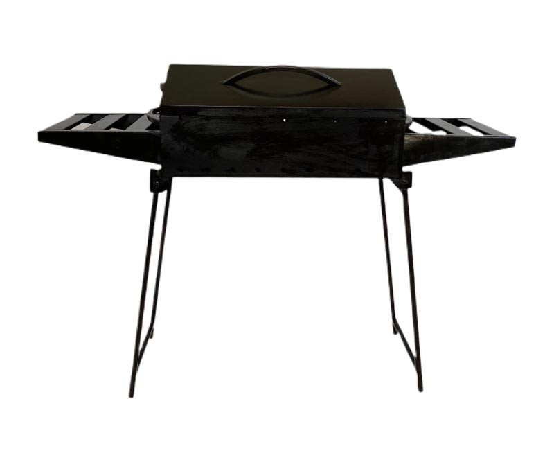 Мангал-барбекю розкладний MB9-3N на 9 шампурів із двома столиками та посиленими розкладними ніжками – це переносний мангальний комплекс, який дозволить смажити на мангалі, готувати гриль за допомогою кришки-барбекю.