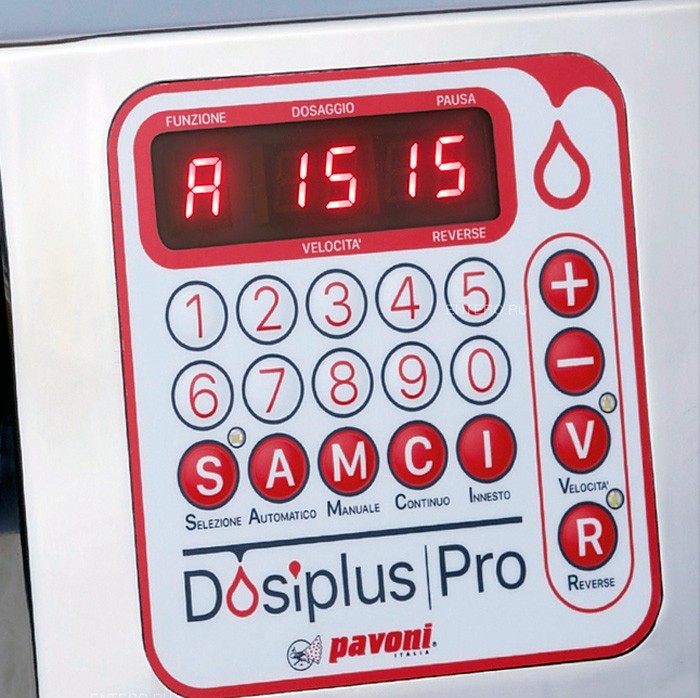 Модель Pavoni Dosiplus PRO оснащена програмованої панеллю керування, електронною системою дозування, автоматичним і ручним режимами роботи.