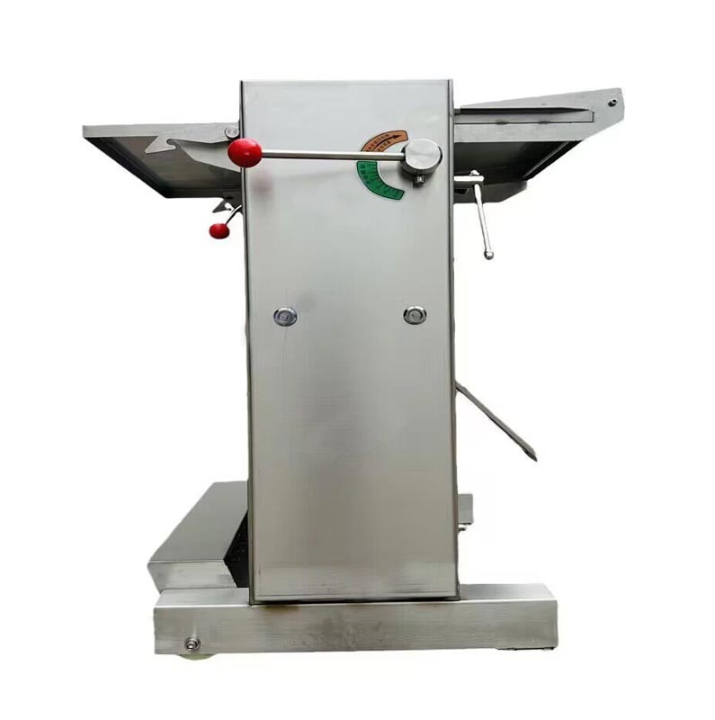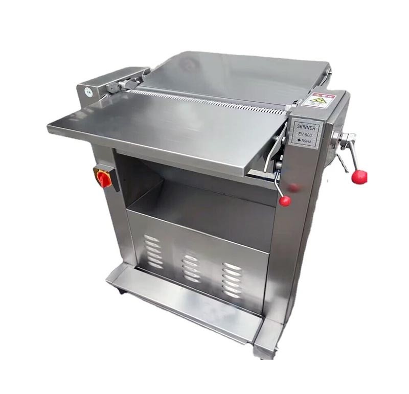 Машина працює за рахунок спеціального ножового механізму та притискного пристрою, який надійно фіксує м'ясо. Товщина зрізу регулюється, що дає змогу адаптувати обладнання під різні типи продукції. Діапазон товщини від 0,5 до 6 мм, забезпечуючи акуратне відділення шкіри без пошкодження м'яса.
