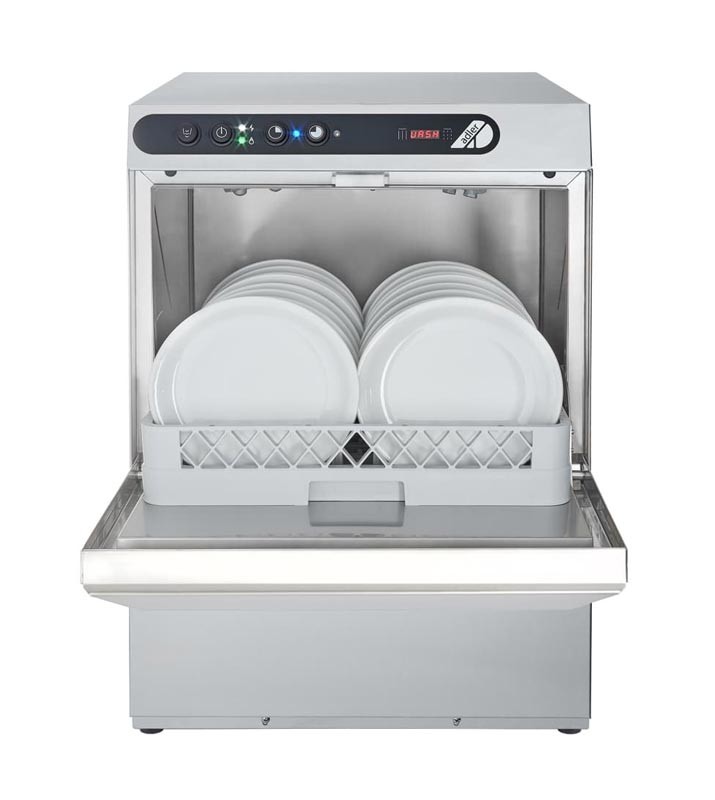 Посудомийна машина з фронтальним завантаженням Adler ECO 50 PD призначена для миття тарілок, склянок, столових приладів у їдальнях, ресторанах, кафе.