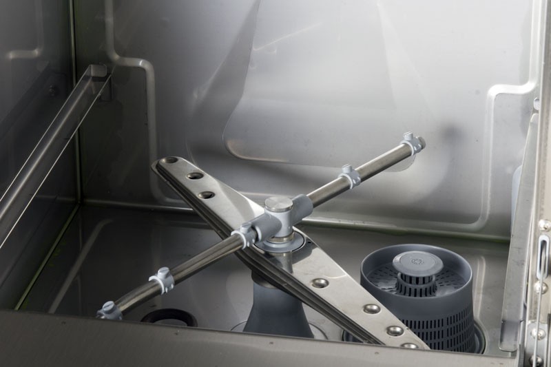 Фронтальна посудомийна машина Apach AF 500 DD для миття склянок, келихів, тарілок і столових приладів в ресторанах, кафе, барах.