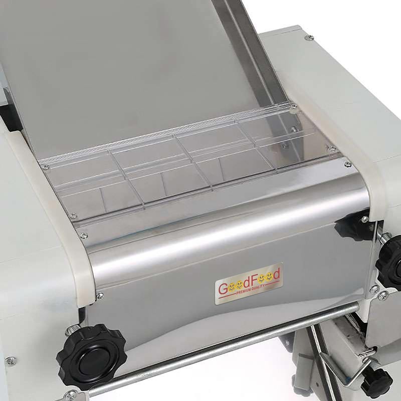 Електрична тісторозатка - локшинорізка GoodFood NM300WF служить для розкатування крутого тіста і нарізки локшини. Така тісторозкатувальна машина буде корисною при приготуванні чебуреків, пельменів, пасти в кафе або ресторані.