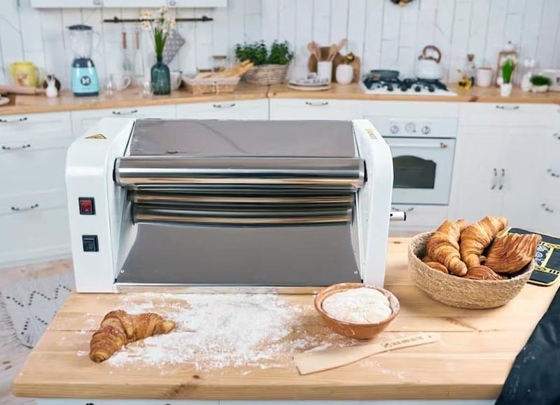 Тісторозкатувальна машина TN07-20-400 використовується для розкочування розкочування тіста просфор, чебуреків, пельменів, хінкалі, піци.