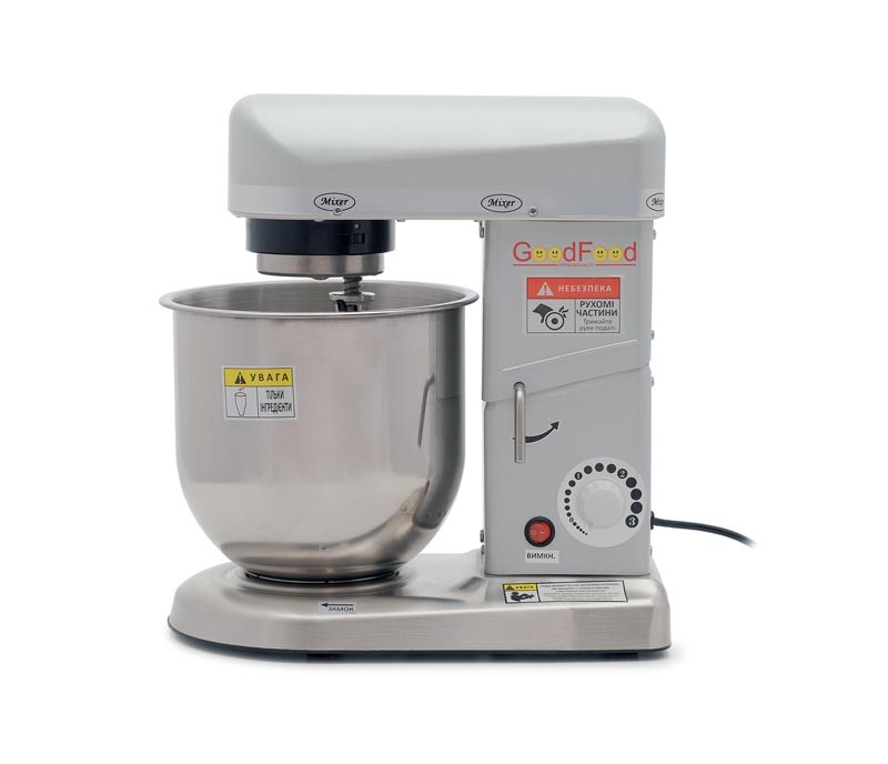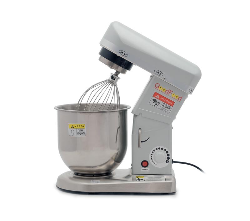 Збивальна машина GoodFood PM-B7 SILVER служить для збивання майонезу, гастрономічних та кондитерських соусів, кремів, збитих вершків, приготування пюре, а також для замішування різних видів тіста – заварного, бісквітного, пісочного.
