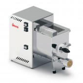 Професійна машина для виробництва макаронів. Ємність бункера: 10 л. Завантаження тесту: 4 кг. Продуктивність: 8 кг / год. Бронзова фильера: d 75 мм. Потужність: 0,75 кВт.