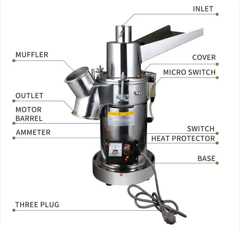 Молотковий млин можна використовувати для всіх видів твердих зерен, включаючи каву, кунжут, волоський горіх, рис, чорний рис з кісточкою, сою, боби мунг, арахіс, насіння лотоса, кукурудзу, ячмінь.