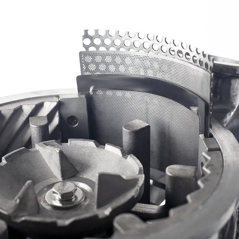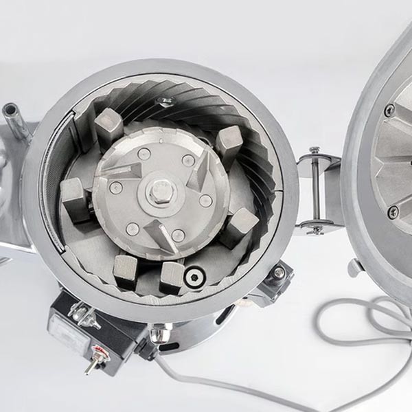У вертикальному млині-дробилці ефективно подрібнюється традиційним методом - за рахунок відцентрового зусилля на ножах-молоточках з карбіду вольфраму.