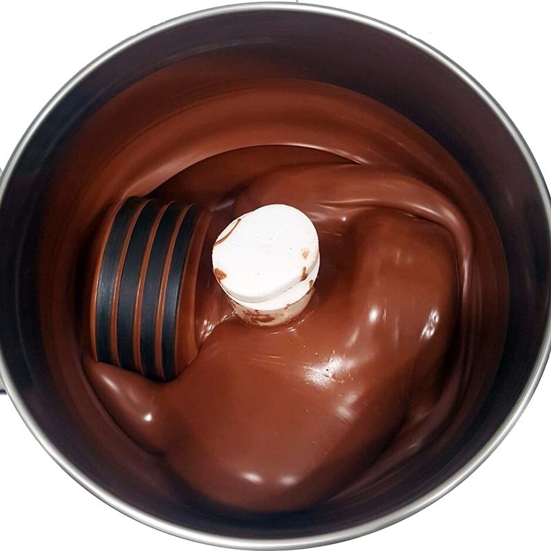 Модель Tilting Chocolate Refiner є ефективним перетирачем (рафінером) для приготування шовкового шоколаду, горіхів і масел з нуля. Перетирання дозволяє максимально зберегти поживну цінність і водночас зберегти тривалий термін придатності товару.