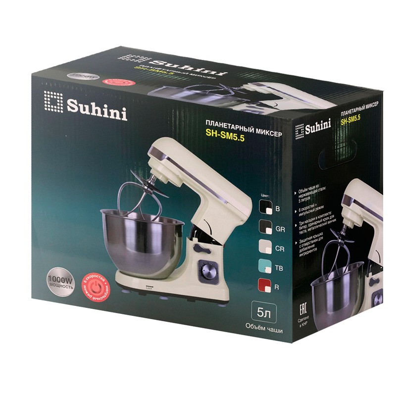 Настільний планетарний міксер для будинку SUHINI SH-SM5.5TB призначений для замішування тіста різної в'язкості, збивання яєць, вершків, кремів і мусів, приготування фаршу і т.п.