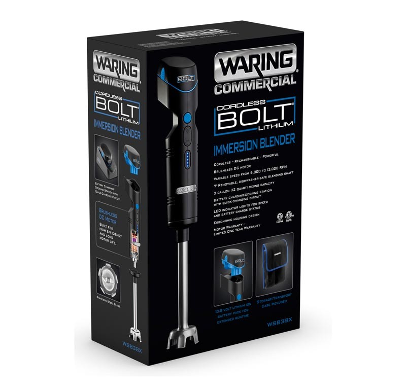 Бездротовий ручний міксер Waring WSB38XE серії Bolt служить для приготування соусів, супів, картопляного та овочевого пюре, мусів, рідкого тіста. Міксер використовується в ресторані, кафе, барі, їдальні
