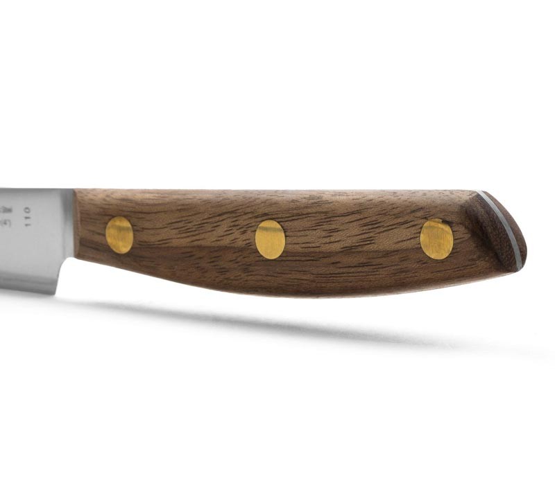 Рукоятка виготовлена з дерева овенкол і кріпиться трьома заклепками.