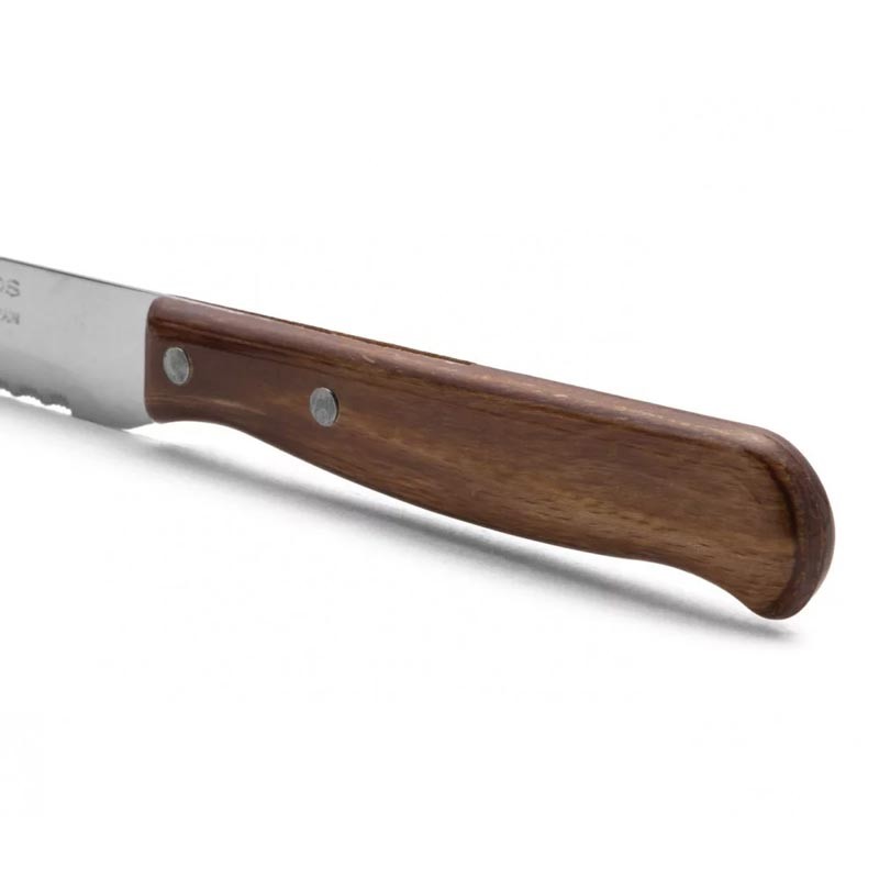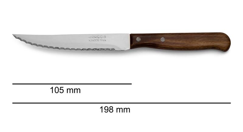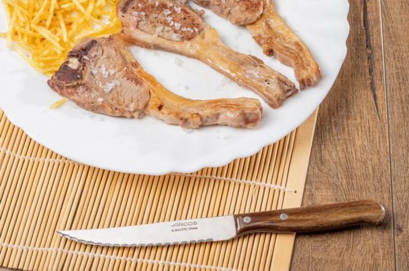 Кухонний ніж Latina Arcos 100401 із серрейторним краєм використовують для легкого відрізання шматочків готового м'яса, зберігаючи структуру та соковитість стейку.