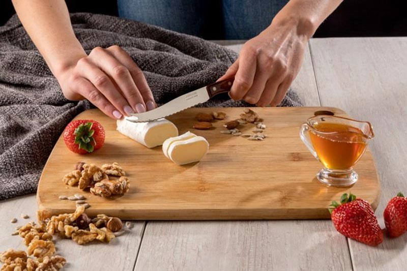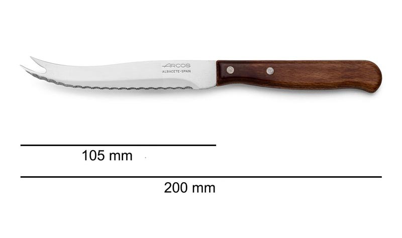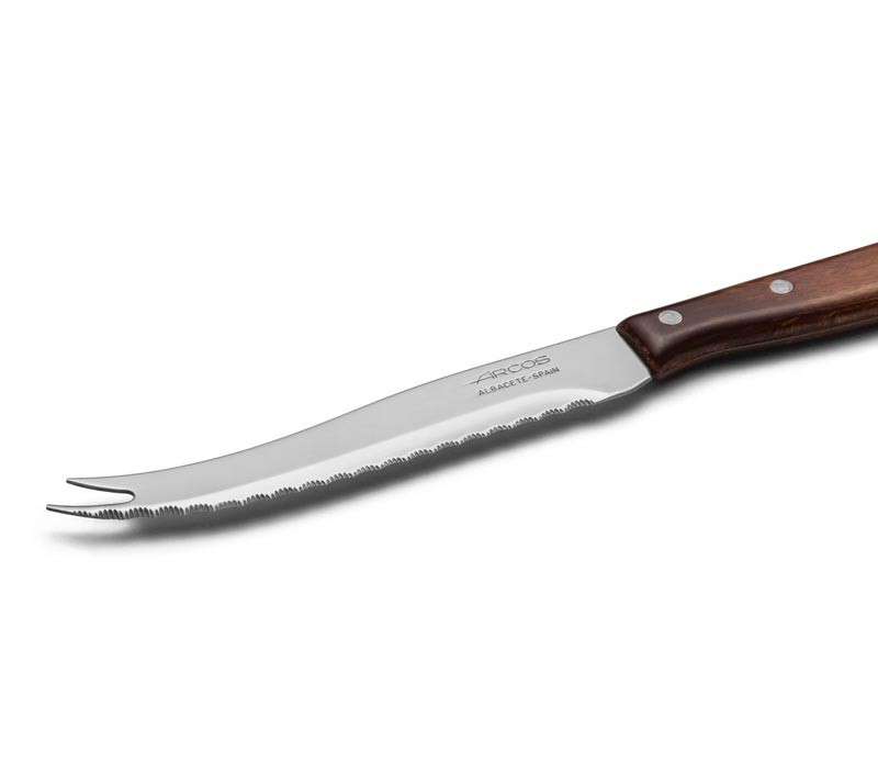 Ніж Latina Arcos 102501 з вузьким зубчастим лезом, з подвійним вістрям, підходить як для нарізки, так і для проколювання сиру. Він нарізує сир точно і вправно.