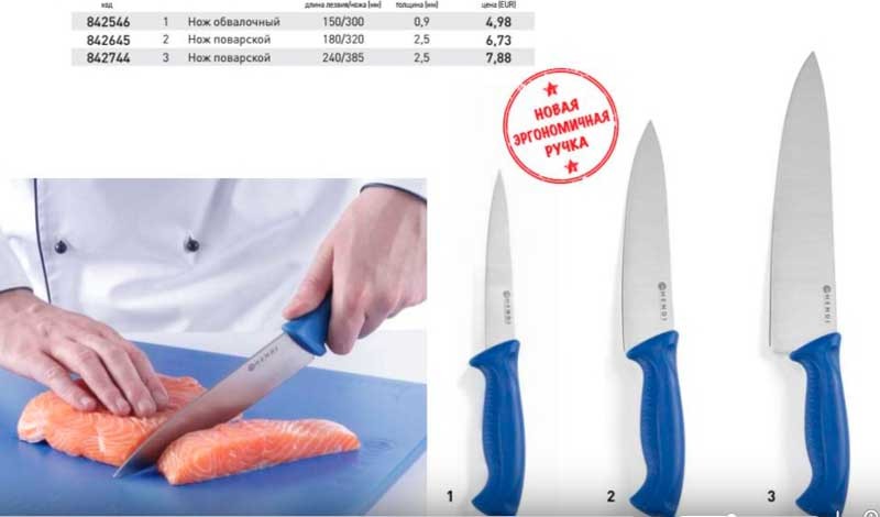 В каталоге профессиональные ножи для кухни Hendi освещены такие вопросы: описание, фото, спецификация, преимущества