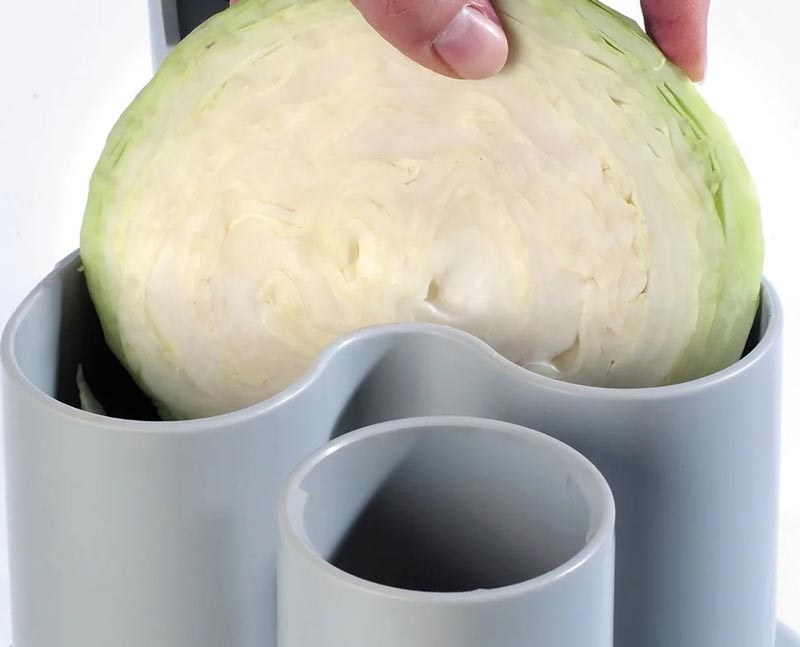 Велика вирва D-подібна площею 104 см 2 об'ємом 1,56 л для великих продуктів (капуста, салат, томати).