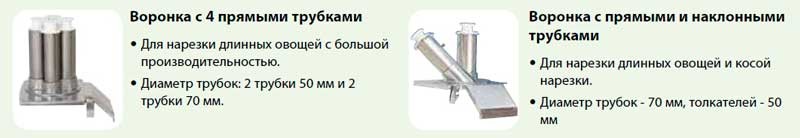 Трубка використовується для безперервної нарізки довгих та ніжних фруктів та овочів.