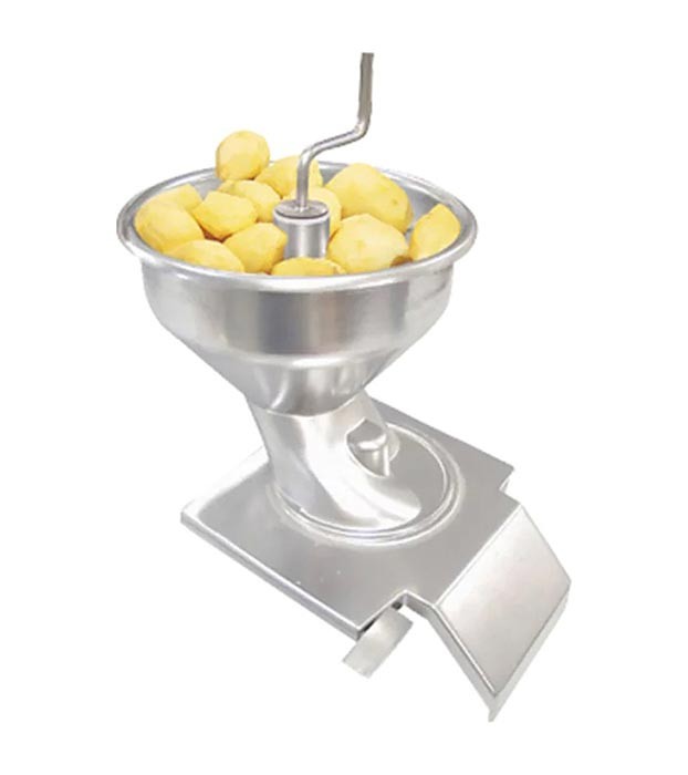 Модель обладнана лійкою з важелем (площа 227 см²) з вбудованою трубкою (Ø 58 мм) і встановлюється на візок із нержавіючої сталі. Форма важеля забезпечує зручну та швидку роботу.
