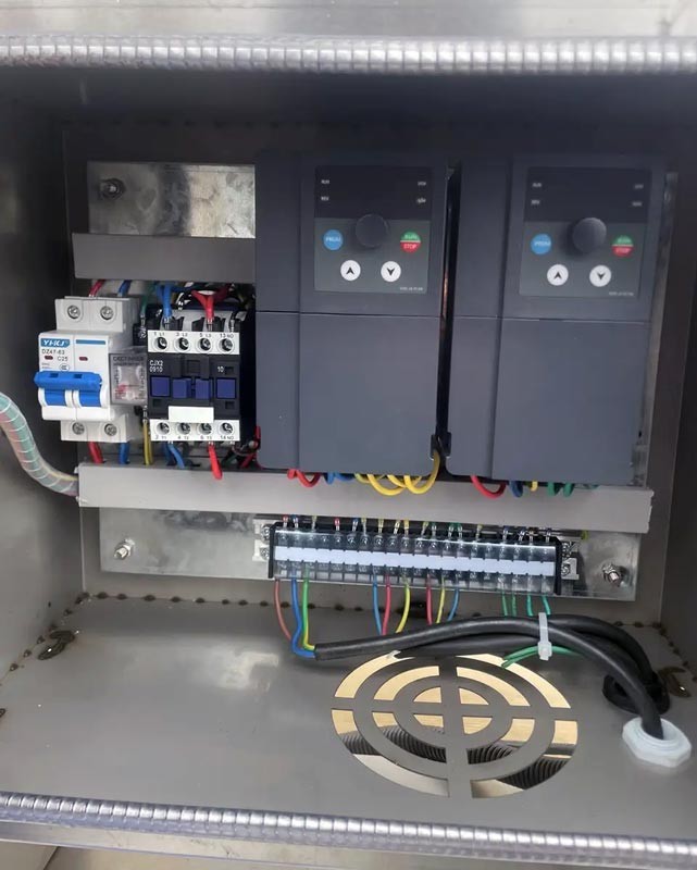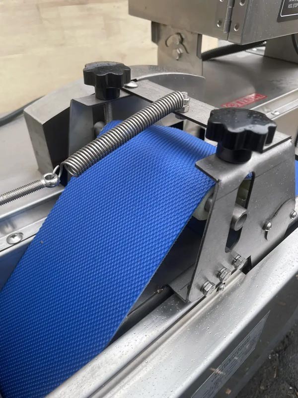 Основною перевагою є транспортерна стрічка, що рухається, і механізм притискання (фіксації) продуктів до транспорту. Швидкість транспорту регульована.