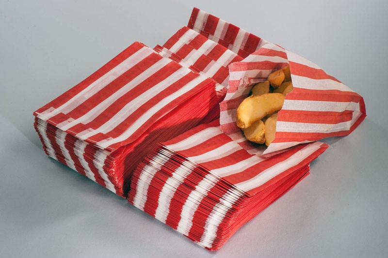 Огляд Пакет паперовий для картоплі фрі з червоною смужкою, 700мл. 500 шт