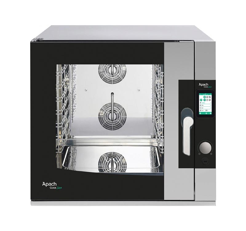 Пароконвектомат Apach Squero AP7QT - багатофункціональна піч, приготування продуктів такими способами як: смаження, запікання, гасіння, випікання, варіння на пару, а також складні програмовані цикли.