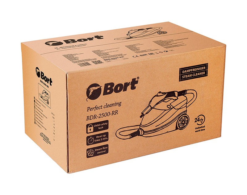 Пароочисник для будинку Bort BDR-2500-RR підійде для чищення та дезінфекції твердих підлогових покриттів з плитки, каменю та інших матеріалів, килимових покриттів, стійких до дії високих температур, вікон, дзеркал, а також прасування в квартирах та приватних будинках.