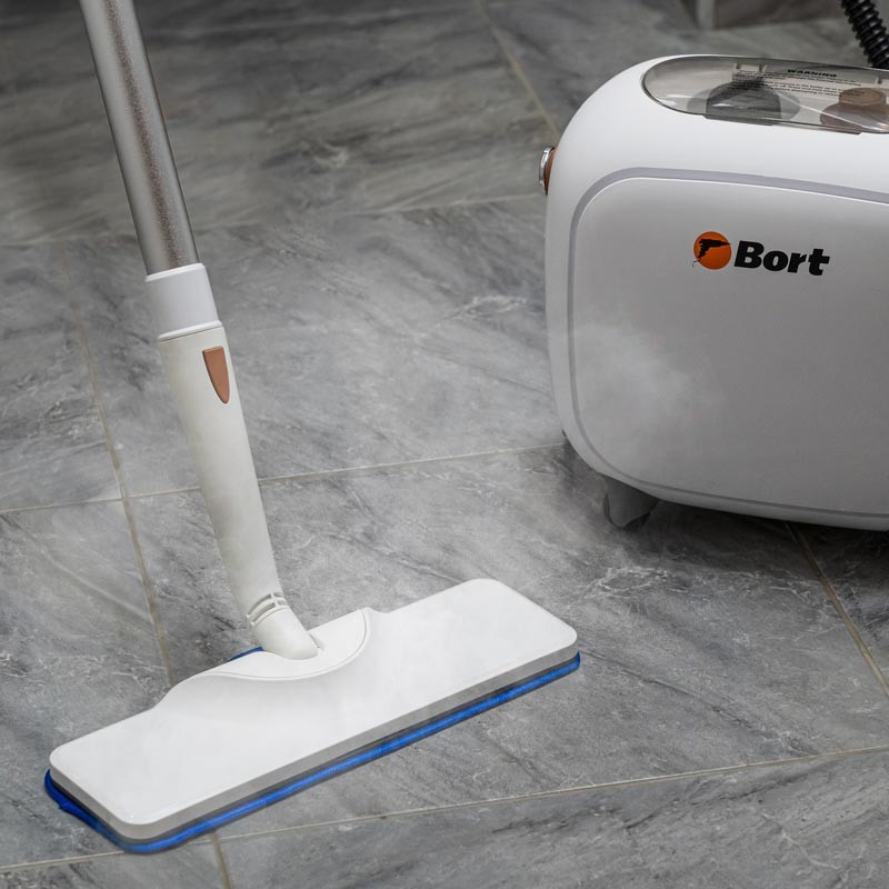 Пароочисник для будинку Bort BDR-3000-RR підійде для чищення та дезінфекції твердих покриттів для підлоги з плитки, каменю, килимових покриттів, стійких до впливу високих температур, вікон, дзеркал, сантехніки.