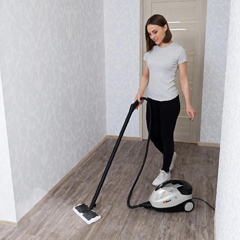 Пароочисник для будинку Bort BDR-5000 Turbo підійде для чищення та дезінфекції твердих покриттів для підлоги, килимових покриттів, стійких до впливу високих температур, вікон, дзеркал.