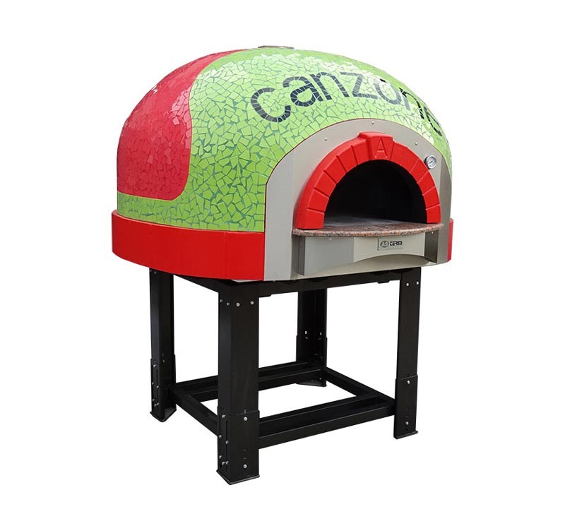 Дров'яна піч для піци AS TERM D120K Mosaic Green & Red купольного типу (помпейська) забезпечує рівномірне випікання при низькій витраті дров. Дрова згоряють у самій камері випічки, і піци набувають специфічного аромату дров. Пряме випромінювання полум'я надає гарного кольору випеченої піци.