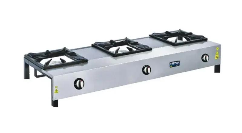 Плита оснащена трьома потужними газовими конфорками збільшеного розміру (до 300×300 мм), що дозволяє одночасно готувати кілька страв у великому посуді. Це особливо важливо для закладів з високою прохідністю та великим обсягом замовлень.