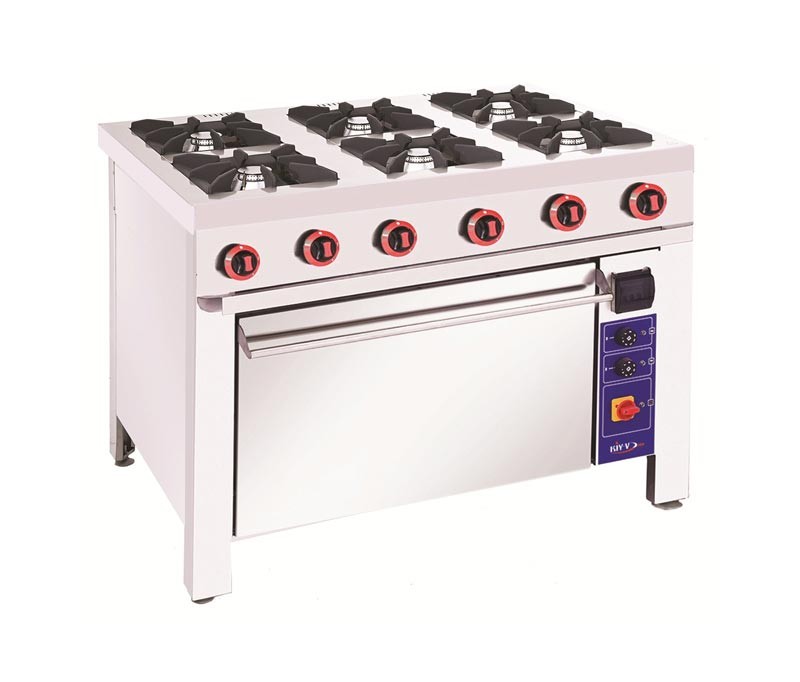 Виробник промислової газової 6-ти конфорочної плити з електродуховкою компанія КІЙ-В надає гарантію 12 міс. модель ПГДЕ-6-П