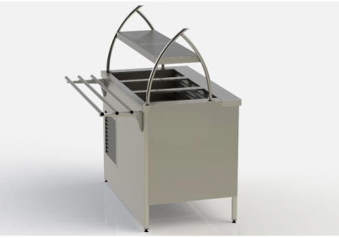 Прилавок холодильний АРТЕ-Н ПВХЛС-1 призначений для короткочасного зберігання і демонстрації холодних закусок в складі ліній самообслуговування в їдальнях.