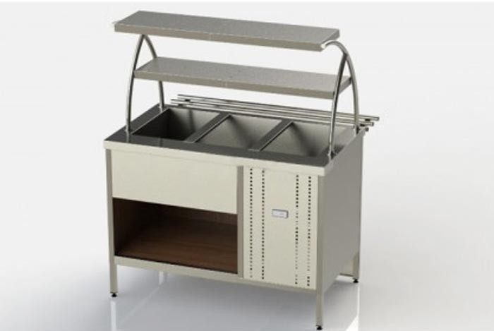 Прилавок холодильний АРТЕ-Н ПВХЛС-2 призначений для короткочасного зберігання і демонстрації холодних закусок в складі ліній самообслуговування в їдальнях.