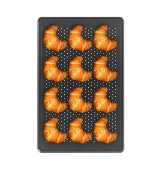Швидке прогрівання алюмінію знижує час приготування та забезпечує рівномірне пропікання тесту. Антипригарне покриття дозволяє уникнути прилипання продуктів до поверхні листа