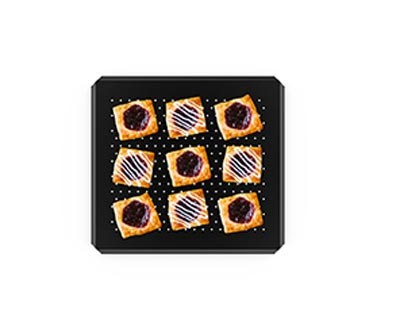 Швидке прогрівання алюмінію знижує час приготування та забезпечує рівномірне пропікання тесту. Перфорована структура виводить зайву вологу з продуктів, активізує процес бродіння, робить випічку м'якою та повітряною.
