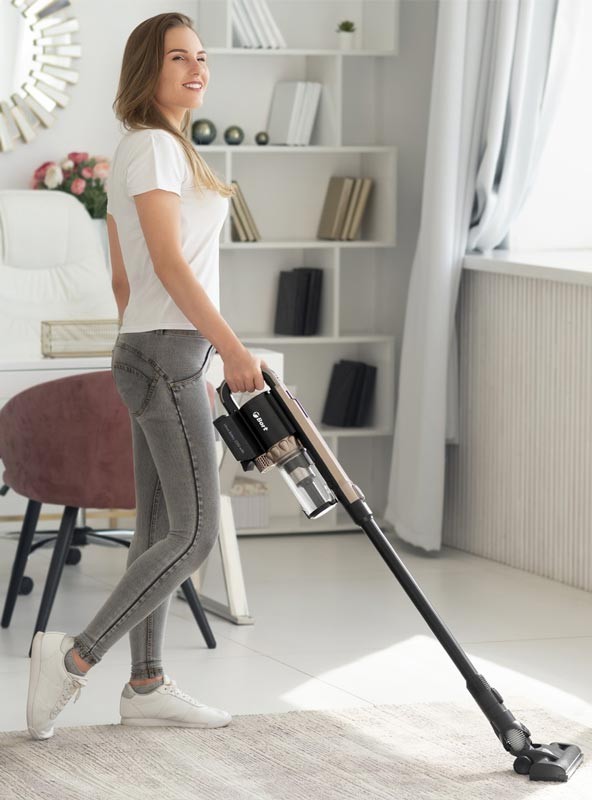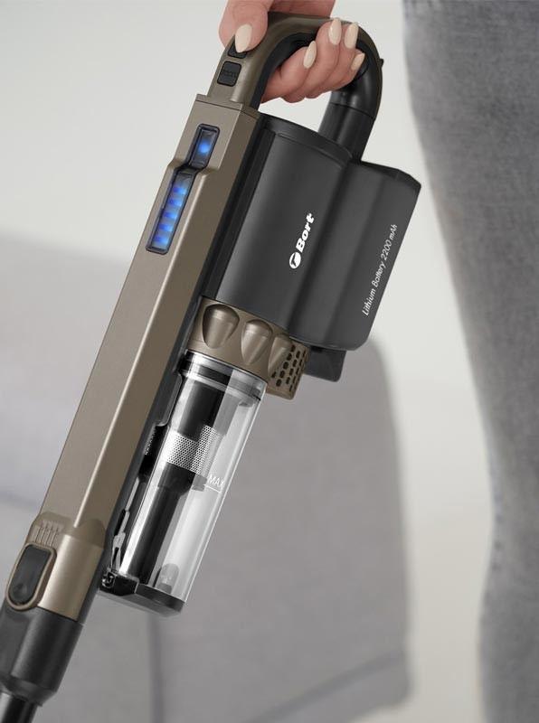 Вертикальний пилосос BORT BSS-18DC-Multicyclone живиться за рахунок літій-іонного акумулятора ємністю 2,2 А·год, здатна забезпечити до 30 хвилин безперервної роботи пилососа. Цього часу достатньо для прибирання 2-3 кімнатної квартири. Про необхідність заряджання акумулятора вчасно попередить LED індикатор заряду.