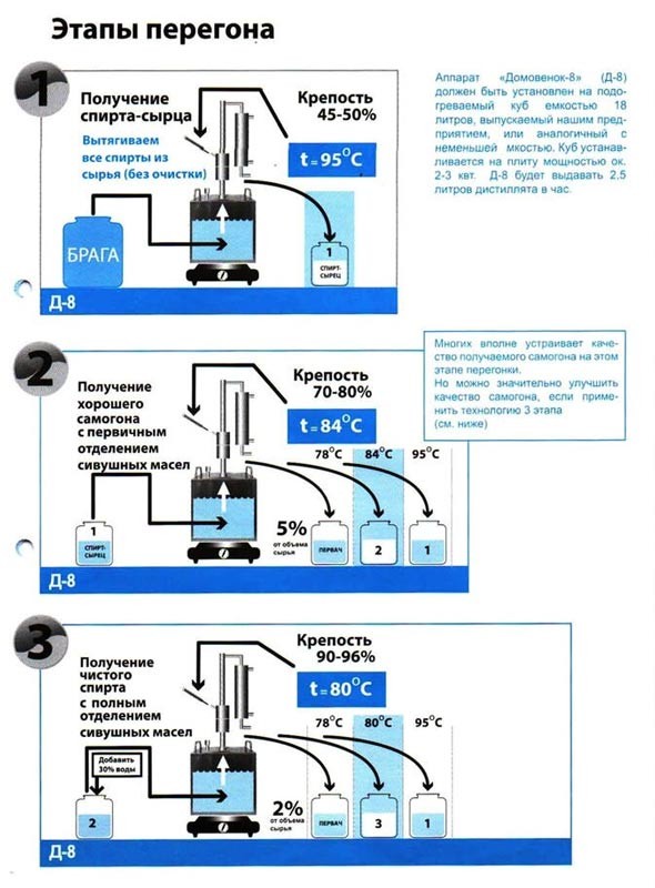 Самогонний апарат Домовёнок-1 підійде для тих, хто віддає перевагу алкогольним напоям власного виробництва, їх покупним аналогам. Самогонний апарат служить для перегонки класичних дистилятів міцністю 40-60 ° (домашнього самогону, коньяку, віскі, бренді), а також напоїв на основі міцного спирту 86 - 88 ° (настоянок, наливок, настоїв на травах).