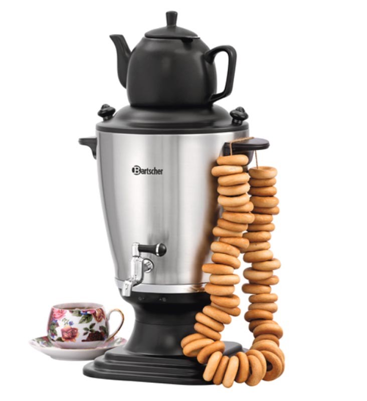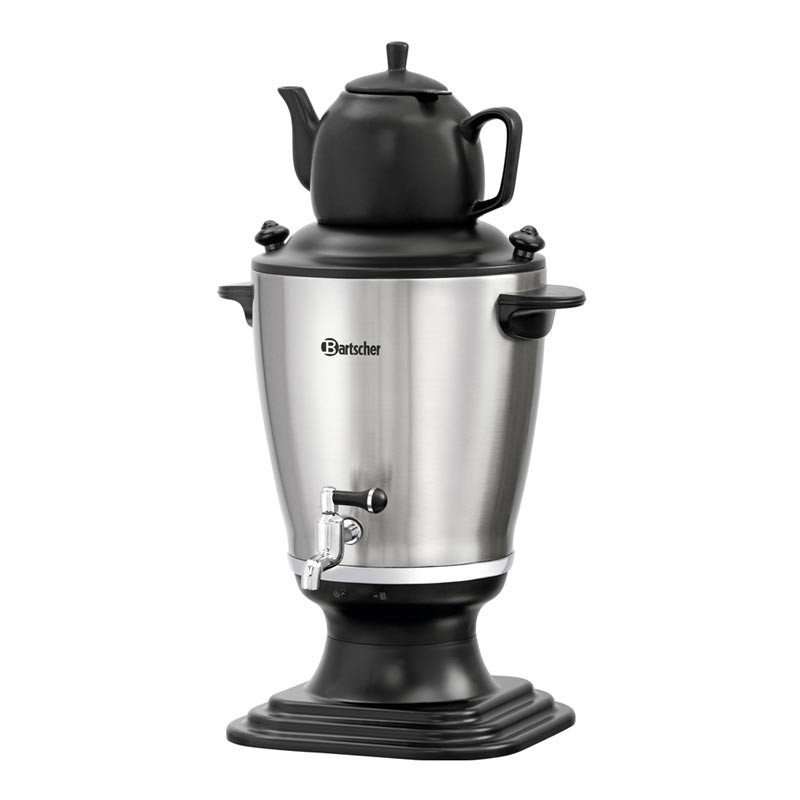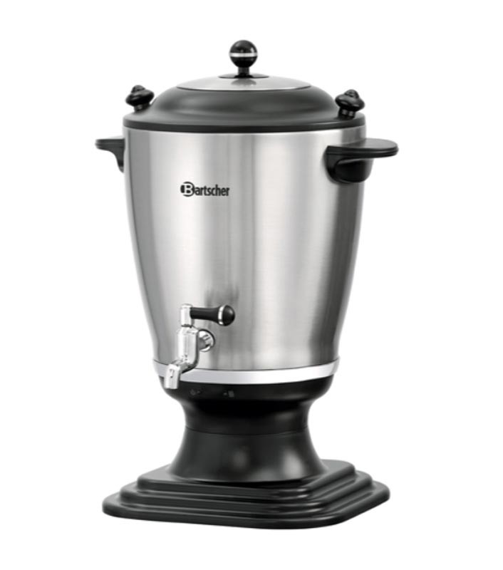 Самовар Bartscher 191004 може закип'ятити більше 3 літрів води та підтримувати її гарячою. Гаряча вода та свіжий чай у чайнику зберігають оптимальну для пиття температуру. Завдяки двом нагрівальним спіралям функція підтримки тепла не потребує великих витрат енергії.