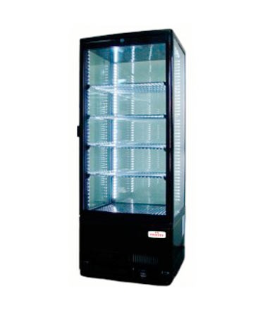 Демонстраційний холодильна вітрина RT98L-1D Black зі світлодіодним підсвічуванням та чудовим оглядом з чотирьох сторін гарне рішення для демонстрації та продажу продуктів та напоїв.