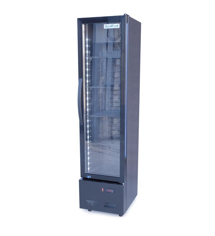Демонстраційна середньотемпературна холодильна шафа GoodFood BC160NBB2LED чорна-чорна призначена для охолодження, демонстрації та короткочасного зберігання продуктів та напоїв.
