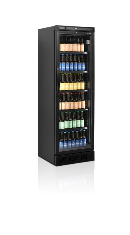 Холодильна шафа Tefcold CEV425 BLACK ідеально підходить для магазинів і супермаркетів, а також може використовуватися як велика вертикальна задня панель у пабах і ресторанах, де ви хочете створити красиву і приваблюючу погляд покупця експозицію, наприклад, вина або пива. Холодильник-вітрина має вбудоване світлодіодне освітлення, що також привертає більше уваги до вмісту. Цей презентабельний холодильник для напоїв у пляшках відмінно підходить для демонстрації товару.